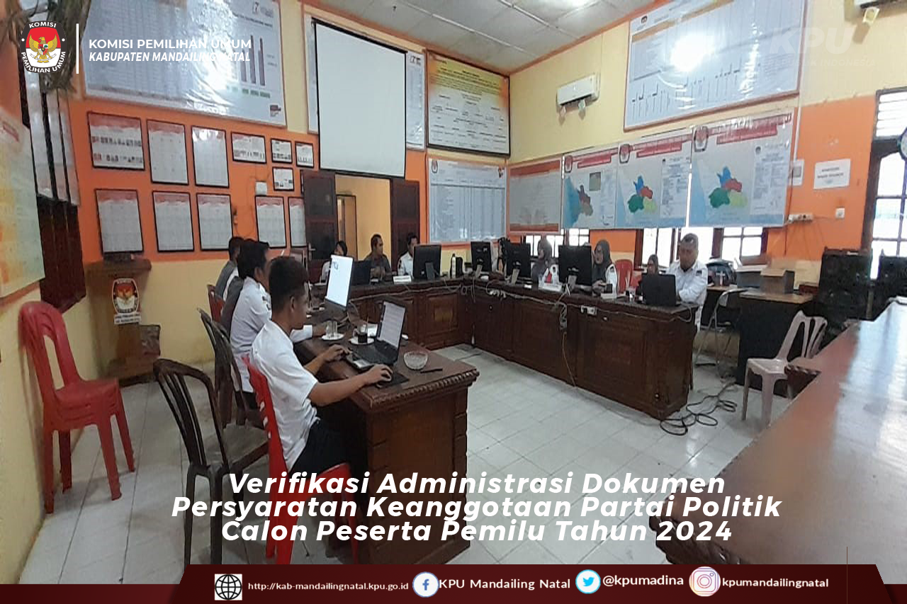 Dari 40 partai politik yang mendaftar terdapat 24 partai politik yang dinyatakan lengkap berkas pendaftaran (dikeluarkan berita acara) dan terdapat 16 partai politik yang belum keluar berita acaranya. Ada 3 partai politik yang tidak melakukan pendaftaran sampai dengan batas akhir pendaftaran tanggal 14 Agustus 2022 pukul 23.59 WIB. Dengan demikian tahapan verifikasi administrasi berkas Partai Politik yang berkaitan dengan kabupaten akan dilimpahkan ke kabupaten untuk diverifikasi.