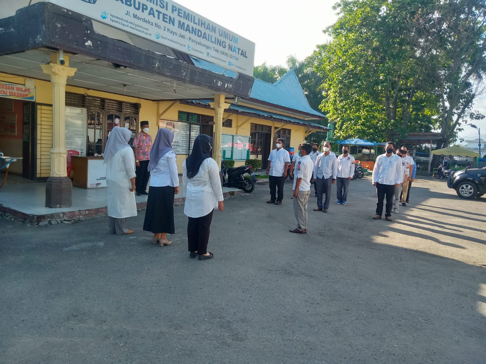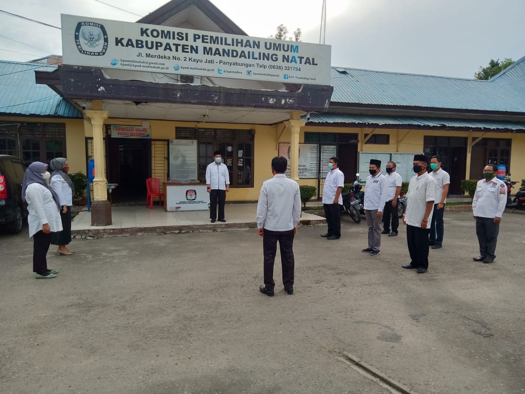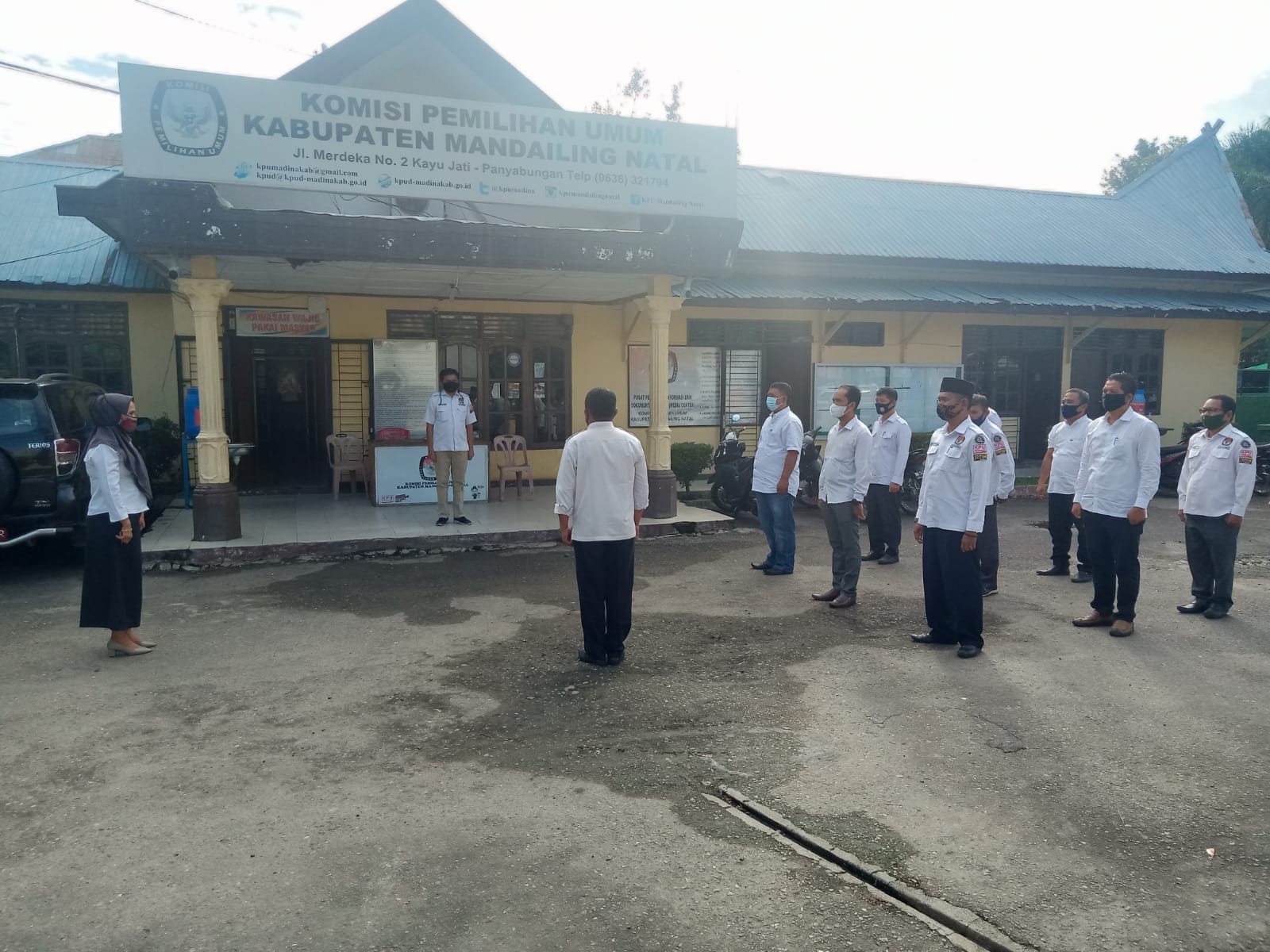 Komisi Pemilihan Umum (KPU) Kabupaten Mandailing Natal mengawali kegiatan dengan melaksanakan Apel Pagi dan Rapat Rutin. Senin 22 November 2021, di halaman Kantor KPU Kabupaten Mandailing Natal.