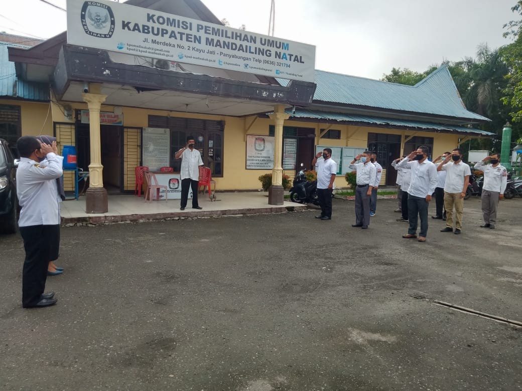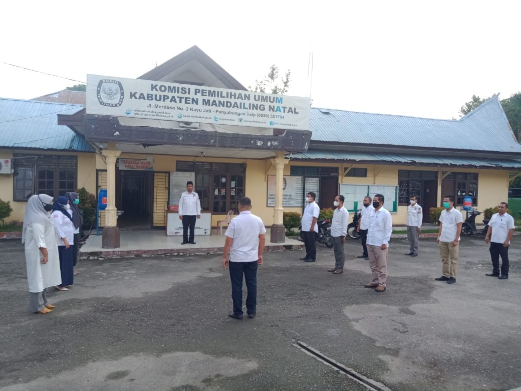 Komisi Pemilihan Umum (KPU) Kabupaten Mandailing Natal mengawali kegiatan dengan melaksanakan Apel Pagi dan Rapat Rutin. Senin 8 November 2021, di halaman Kantor KPU Kabupaten Mandailing Natal. Apel dipimpin oleh Komisioner KPU Divisi Sosialisasi Pendidikan Pemilih dan Partisifasi Masyarakat Muhammad Husein Lubis, dalam arahannya mengajak semua Komisioner beserta Staf Sekretariat KPU Kabupaten Mandailing Natal agar terus meningkatkan disiplin dalam melaksanakan tugas bekerja dengan berpedoman pada Undang- Undang RI Nomor 7 Tahun 2017 tentang Pemilhan Umum. Sebagaimana tertuang pada BAB II pasal 2 bahwa Pemilu dilaksanakan berdasarkan asas Langsung, Umum Bebas, Rahasia dan Adil dipertegas lagi dengan Pasal 3 bahwa menyelenggaragakan PEMILU, penyelenggara harus melaksanakan PEMILU berdasarkan pada asas- asas sebagaimana dimaksud dalam Pasal 2 dan penyelengggarannya harus memenuhi prinsip yaitu: mandiri; jujur; adil; berkepastian hukum; tertip; terbuka; Proporsional; akuntabel; efektifif; dan efesien. Setelah apel pagi selesai kemudian dilanjutan dengan Rapat Rutin. Rapat tersebut dihadiri oleh seluruh Komisioner KPU, Sekretaris beserta jajaran Sekretariat KPU Kabupaten Mandailing Natal. Rapat dilaksanakan dalam rangka membahas rencana kegiatan untuk satu (1) minggu kedepan, diantaranya : 1. Divisi Perencanaan Data dan Informasi; Melanjutkan proses Singkronisasi Data pada PDPb (Pemutakhiran Daftar Pemilih berkelanjutan) online yang masih terkendala server; Koordinasi lanjutan dengan Dinas Kependudukan dan Catatan Sipil terkait PDPb (pemutakhiran Daftar Pemilih berkelanjutan) Tahun 2021. 2. Divisi Teknis Penyelenggara Pemilu; Memantau perkembangan persiapan Pemilu/Pemilihan Tahun 2024 pada Situs Resmi KPU RI dan group Media Sosial Divisi Teknis KPU Provinsi Sumatera Utara. Menindaklanjuti Surat KPU Provinsi Sumatera Utara Nomor 772/PL.02/12/2021 tanggal 2 November 2021 perihal permintaan DIM (Daftar Inventarisasi Masalah) evaluasi pemungutan, penghitungan suara dan rekafitulasi hasil penghitungan suara dan serta penetapan hasil pasangan calon terpilih pada Pemilihan Tahun 2020. 3. Divisi Hukum dan Pengawasan; Memantau perkembangan di JDIH (Jaringan Dokumentasi dan Informasi Hukum) KPU RI. 4. Divisi Sosialisasi, SDM dan Parmasy; Mengoptimalkan pengelolaan PPID (Pejabat Pengelola Informasi dan Dokumentasi) di stuan kerja KPU Kabupaten Mandailing Natal; Menindaklanjuti Surat KPU RI Nomor 958/PP.07/09/2021 tanggal 19 Oktober 2021 perihal Penetapan Keputusan Akun Media Sosial Resmi KPU Kabupaten Mandailing Natal. 5. Divisi Keuangan, Umum dan Logistik. Menunggu izin dari KPU RI Terkait Penghapusan Barang logistik Pasca Pemilihan Tahun 2020. Koordinasi dengan Badan Kepegawaian Daerah Kabupaten Mandailing Natal terkait Surat Sekretaris Jenderal KPU RI Nomor 2662/SDM.05.1/04/2021 tanggal 7 Oktober 2021 tentang Permintaan Persetujuan Alih Status/Pindah Intasnsi bagi PNS yang dipekerjaakan di KPU Kabupaten Mandailing Natal.