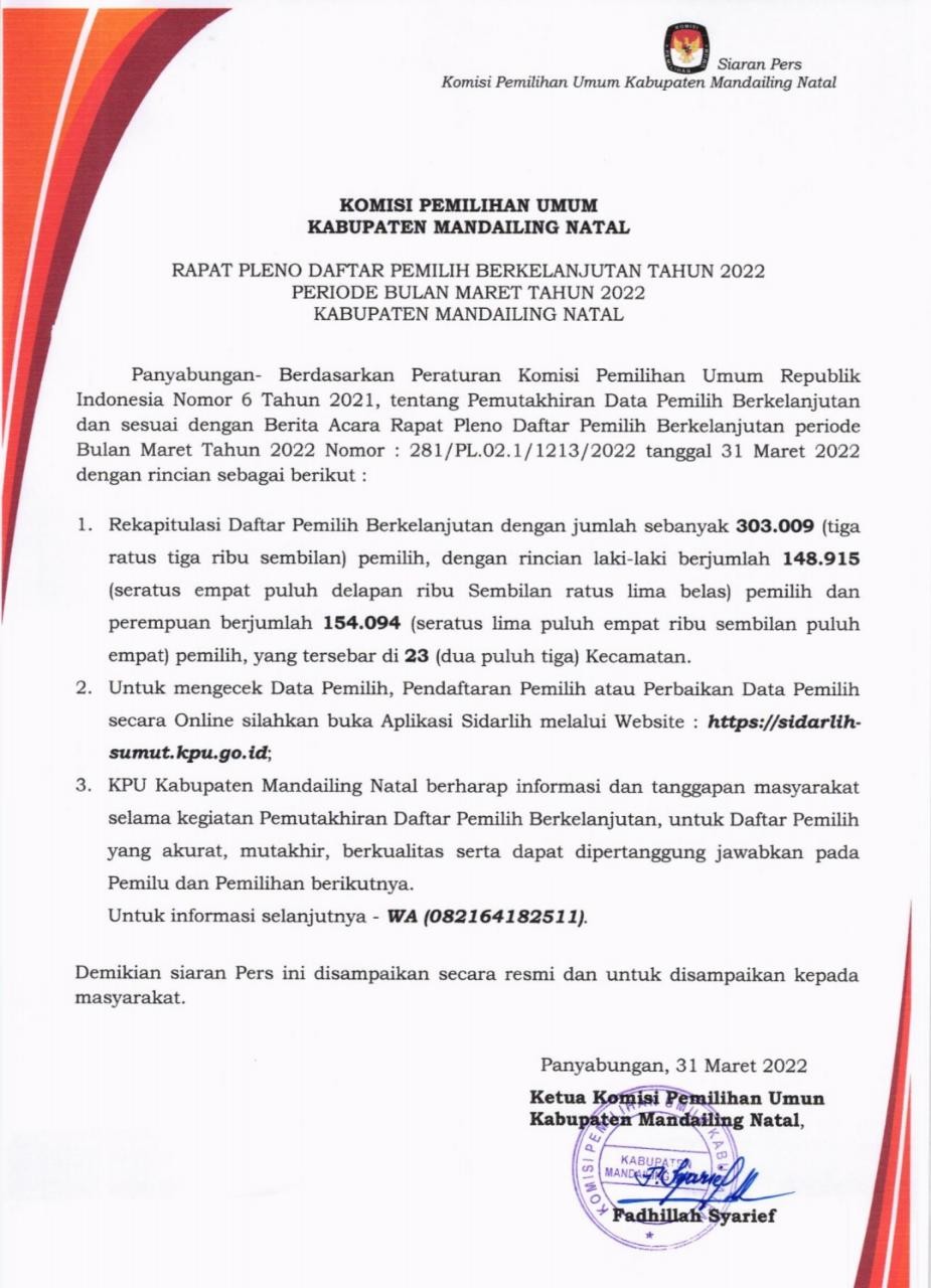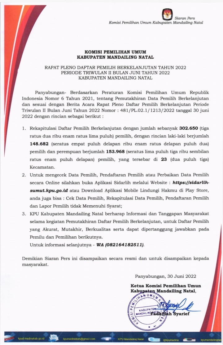 Bagi saudara/i yang mau mengecek datanya dalam Daftar Pemilih silahkan dibuka: